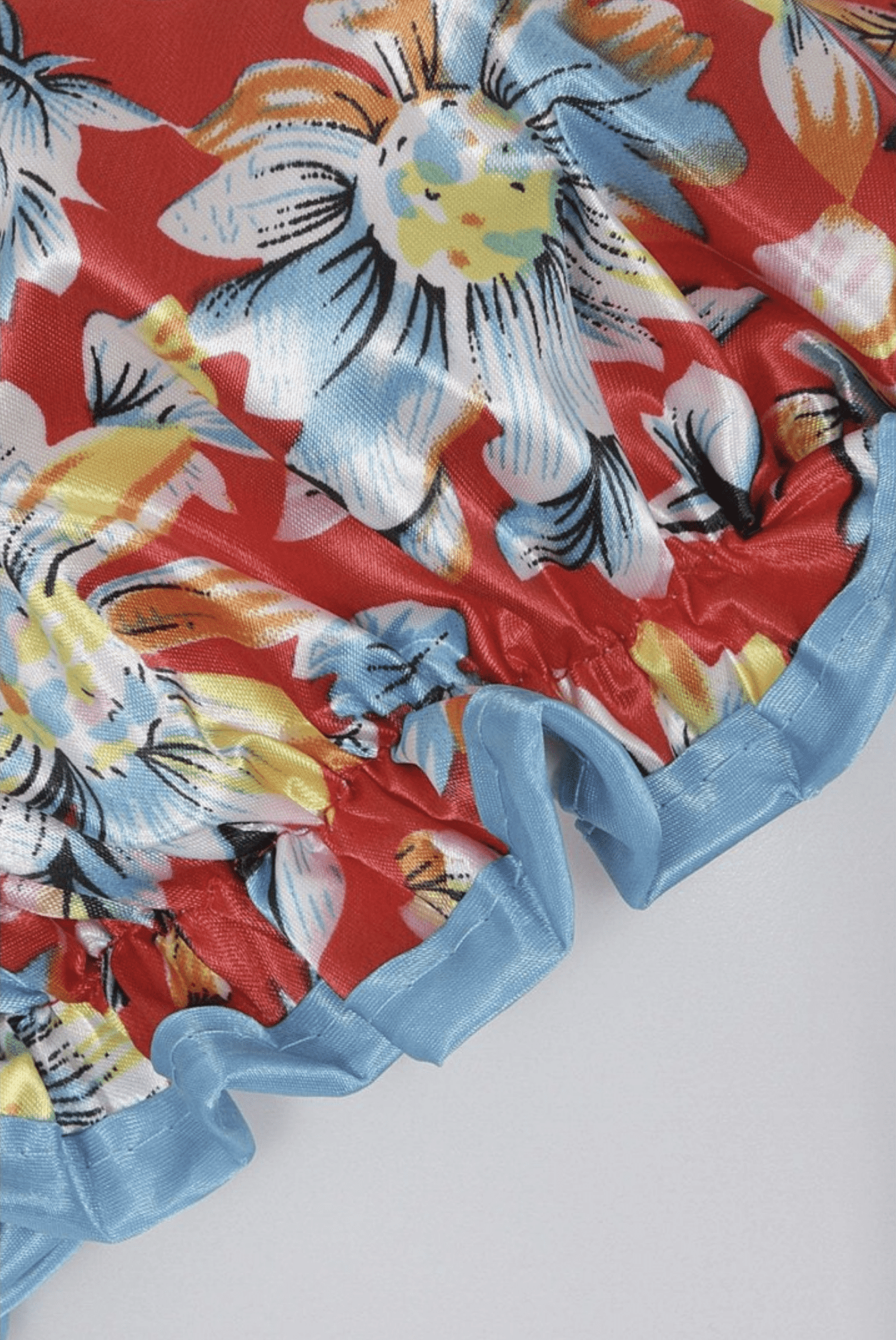 Dale glamour a tu ducha con este gorro de ducha de flores vintage ! Su estampado de flores es súper kitsch , con ribete en azul contrastando con el color naranja