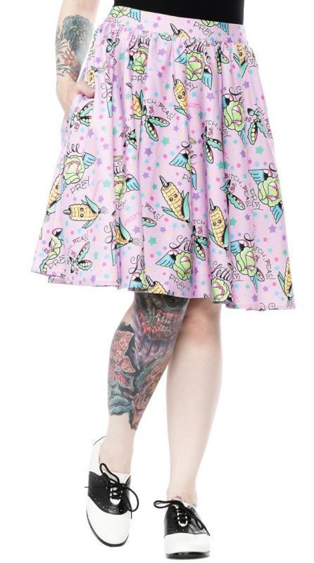 Etiquetas Falda alternativa, falda de vuelo rosa, Falda kawaii rosa, falda sourpuss, ropa alternativa