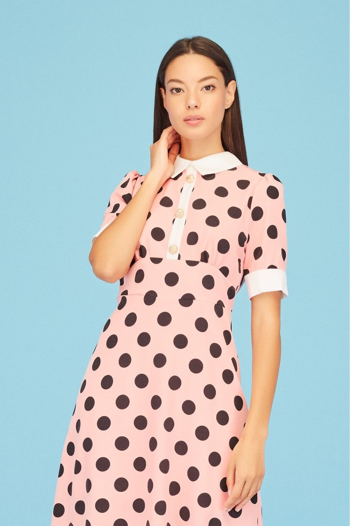 Vestido con cuello camisero. Manga francesa con puño. Detalle botones decorativos.